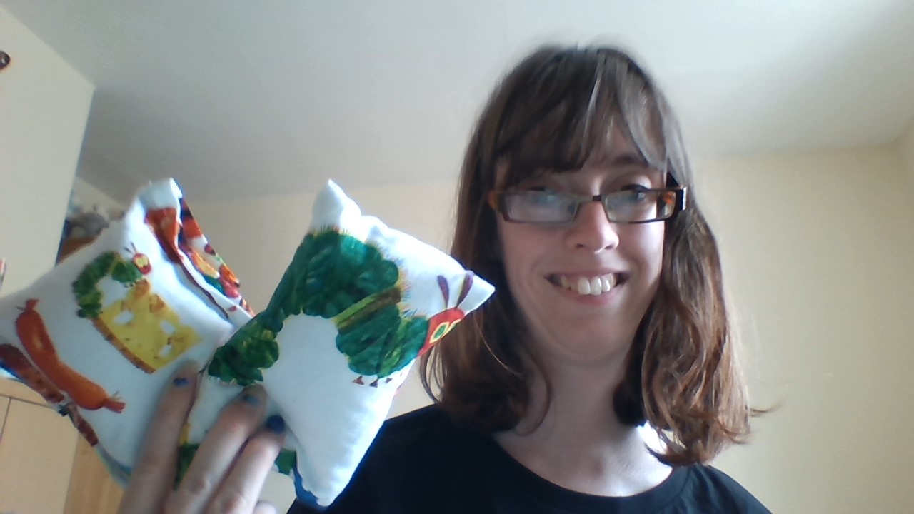 I hope you’re all well. I got my new wheat bags that my lovely friend Donna made me some Very Hungry Caterpillar covers for, so I thought I’d show you them.